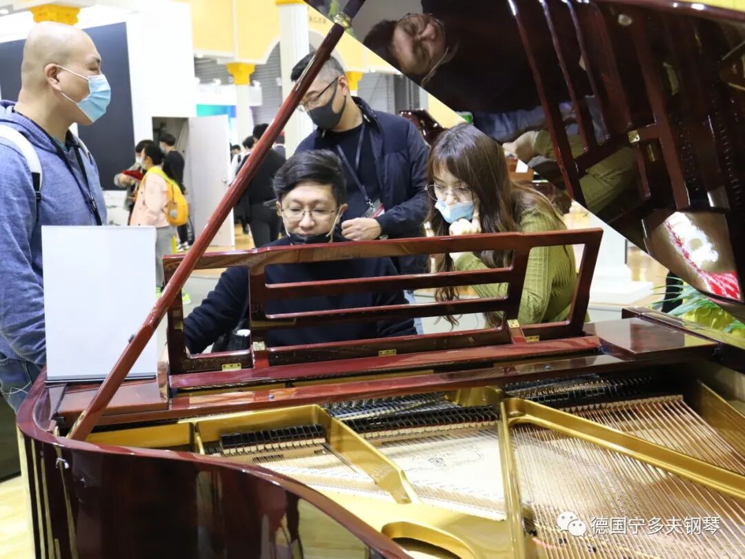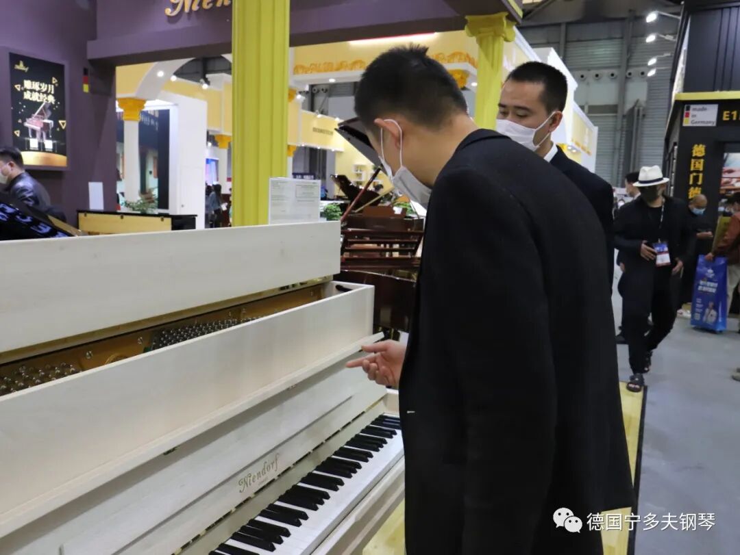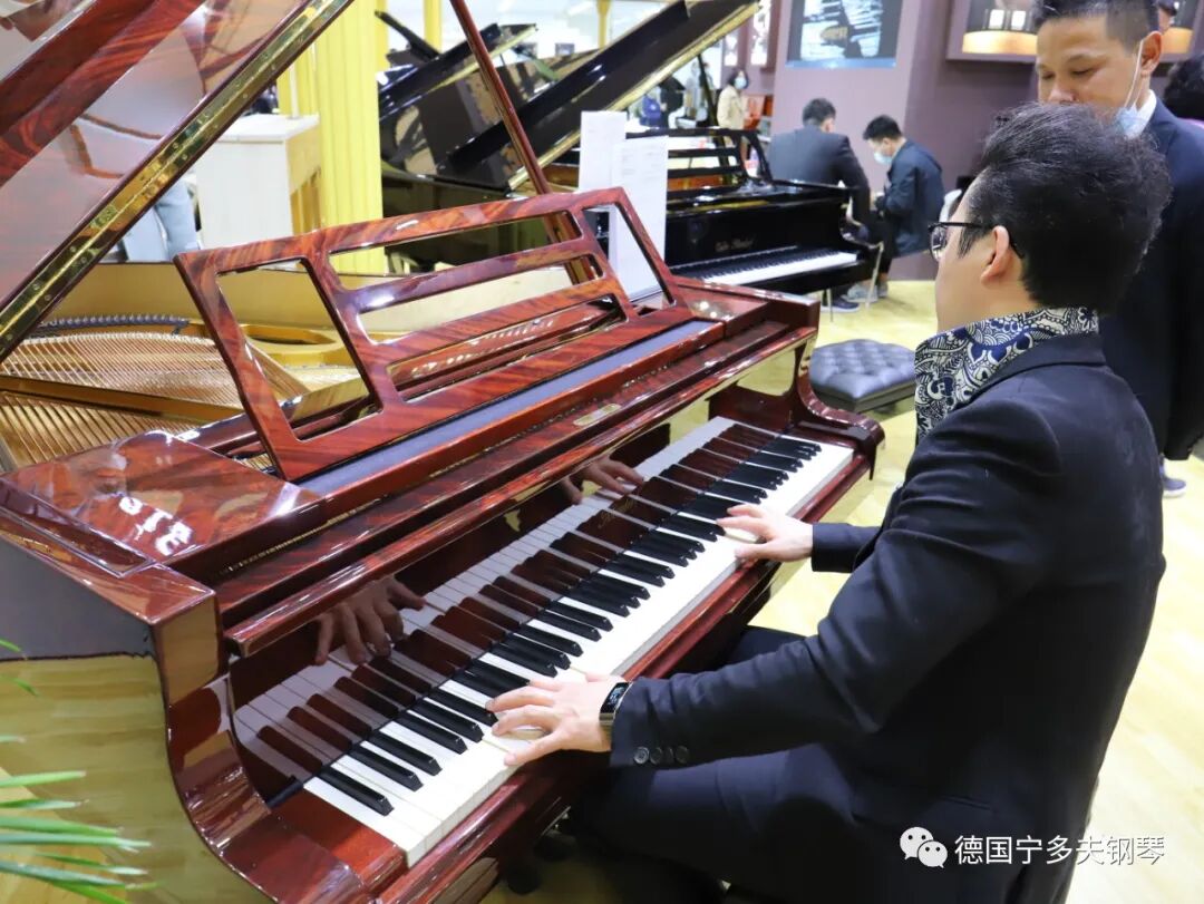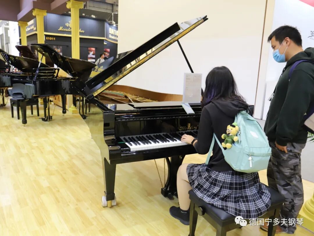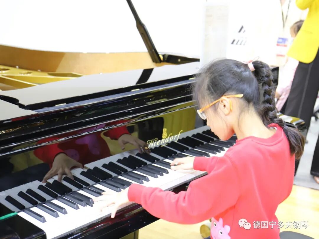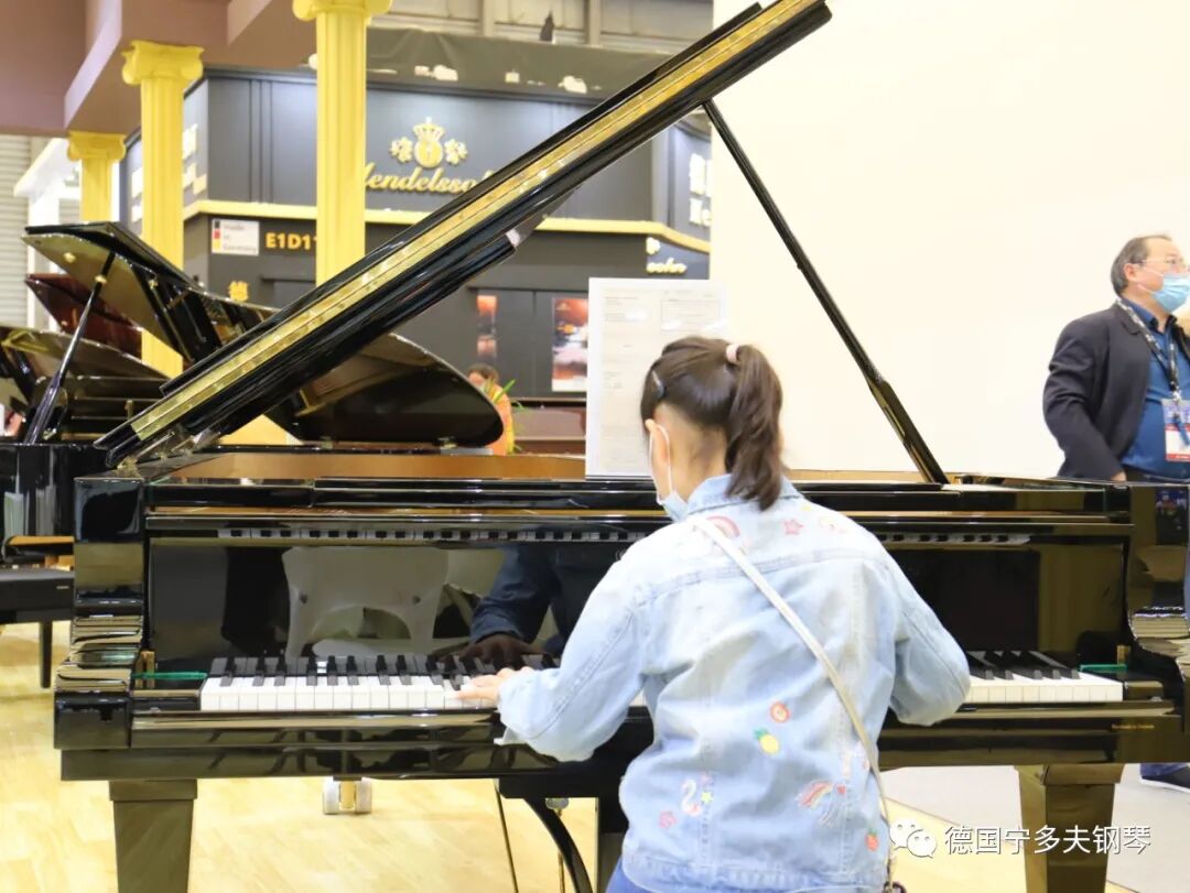 在国内外钢琴大赛上获奖多次的上海市曹扬二中附属学校三年级赵王烨小朋友在宁多夫275钢琴的精彩演奏吸引了众多观众的围观,当被问题使用宁多夫钢琴的感受时,赵王烨小朋友兴奋的说这是她弹过的最好的钢琴。四天来,慕名前来的音乐爱好者争相体验纯正德国钢琴的演奏感受,优美的旋律在展位此起彼伏。